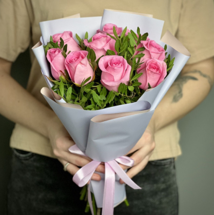 Купить букет из 9 розовых кенийских роз в Эспоо